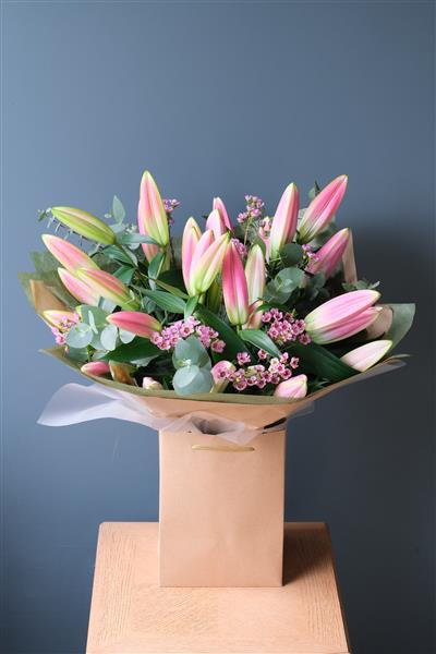 This fresh flower bouquet we have created with our own loving hands showcases natural charm in every stem. Order bouquets and arrangements online with ease, telephone or visit our shop in person if you are local, where every flower is crafted with attention to detail.