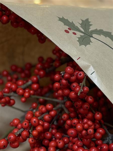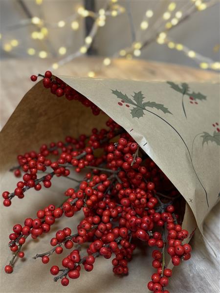 5 Stems of red Ilex berry simply wrapped ready for you to add to your festive arrangements or display on their own in a vase.