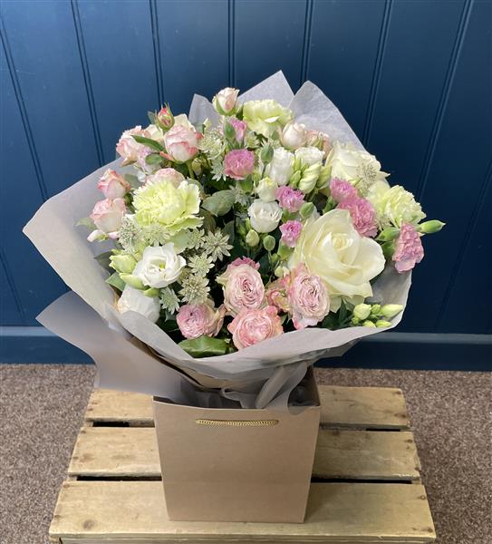 This fresh flower bouquet we have created with our own loving hands showcases natural charm in every stem. Order bouquets and arrangements online with ease, telephone or visit our shop in person if you are local, where every flower is crafted with attention to detail.